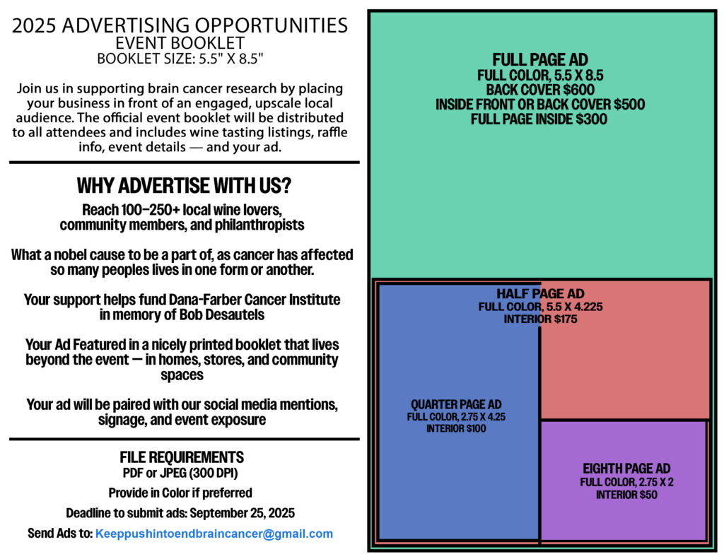 All proceeds will go to the Jimmy Fund in conjunction with Dana Farber’s Brain Cancer Research Department.